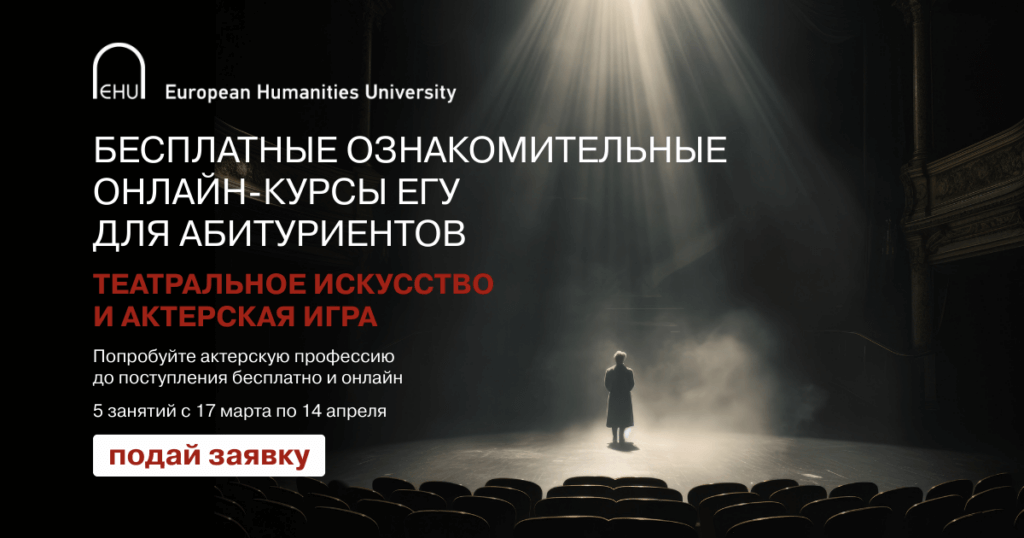 Тогда приглашаем на бесплатные ознакомительные онлайн-курсы программы «Театральное искусство и актёрская игра» Европейского гуманитарного университета!