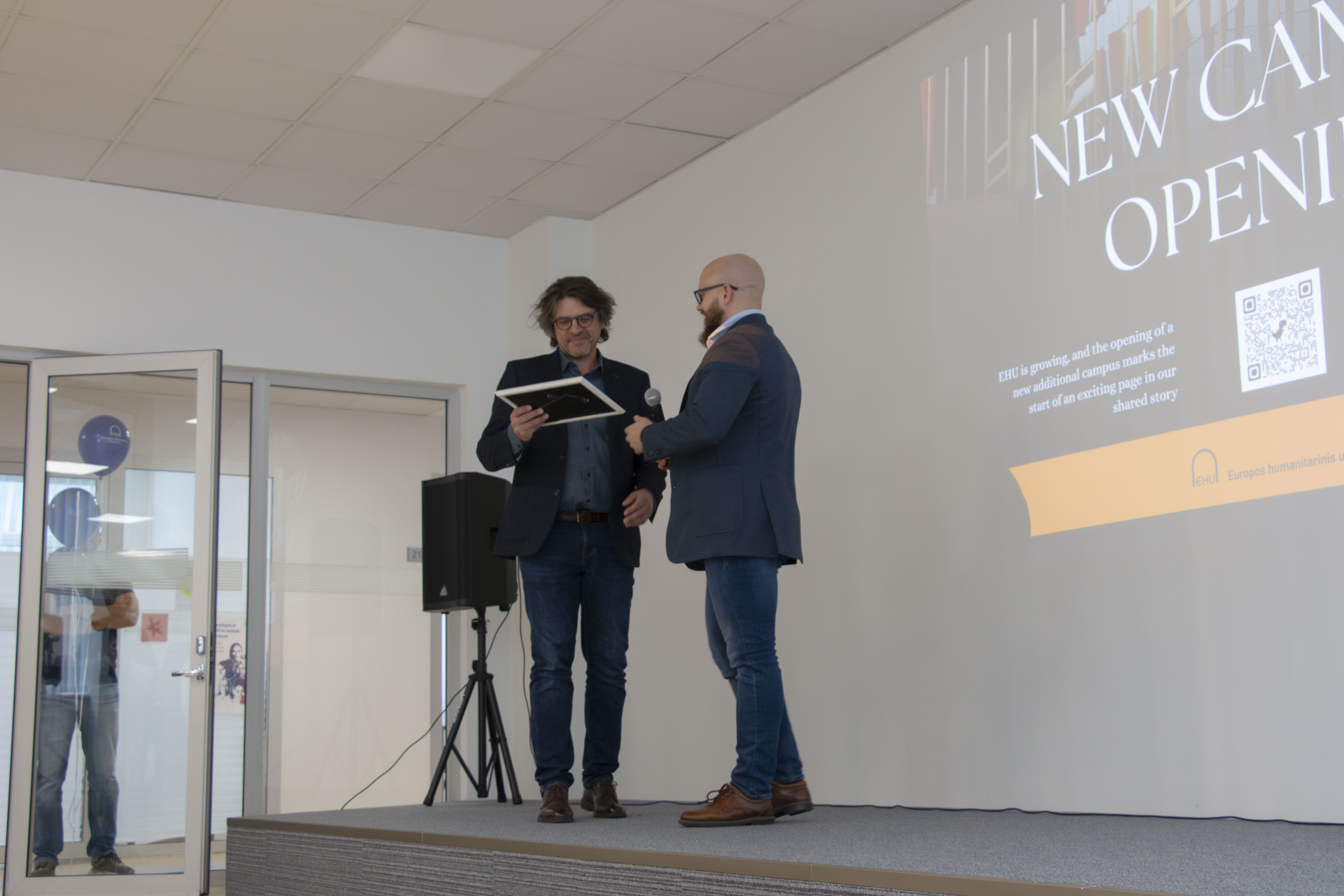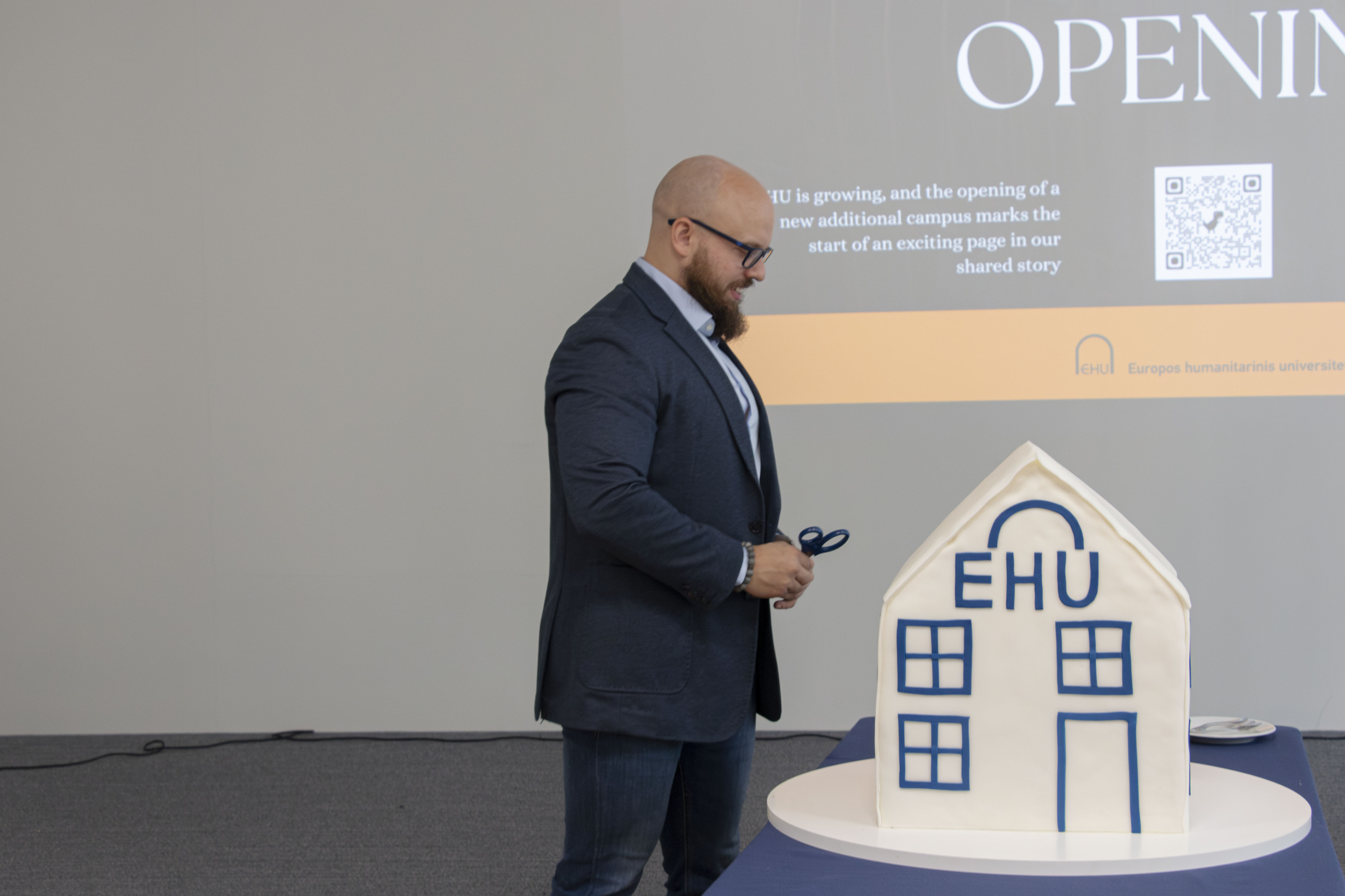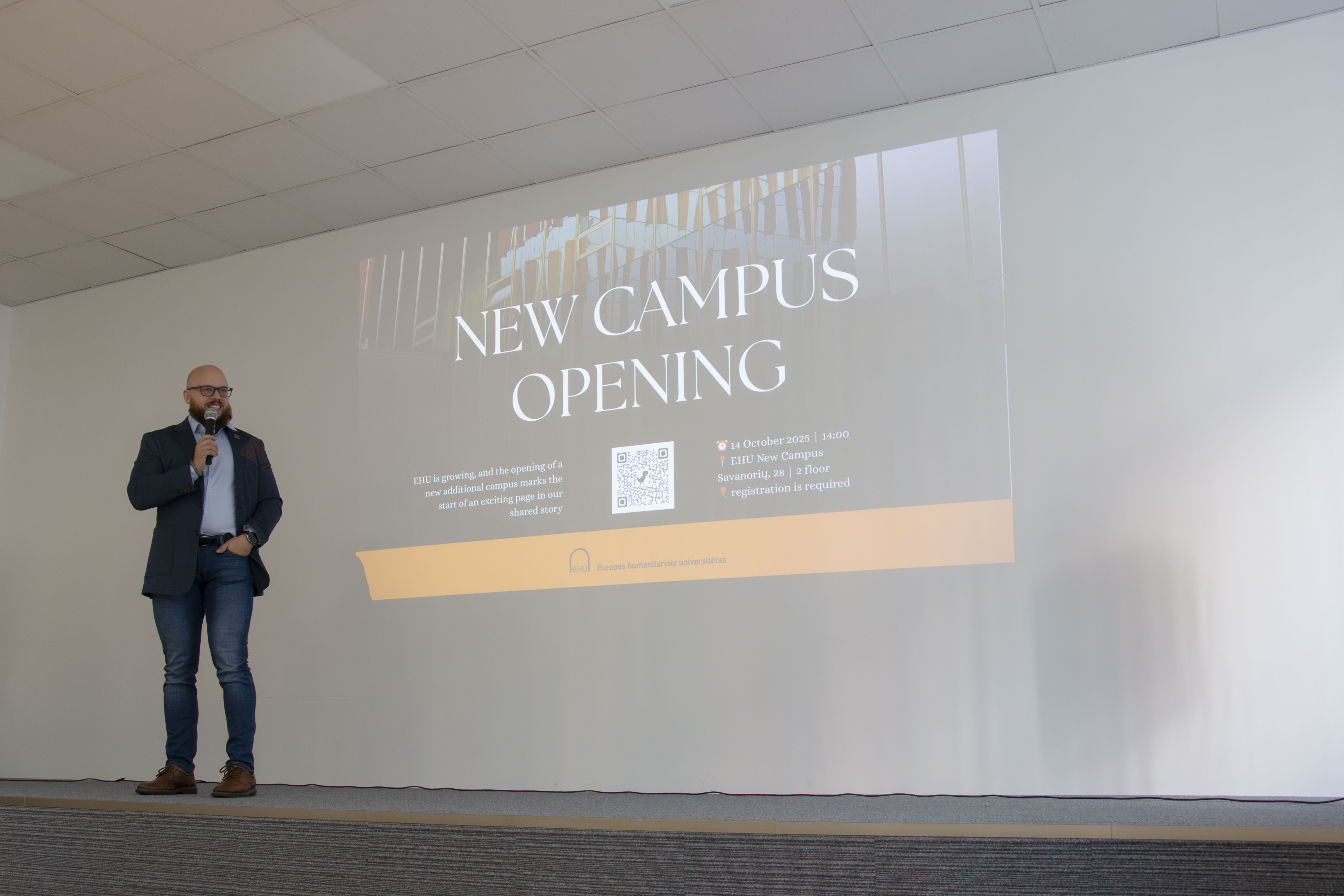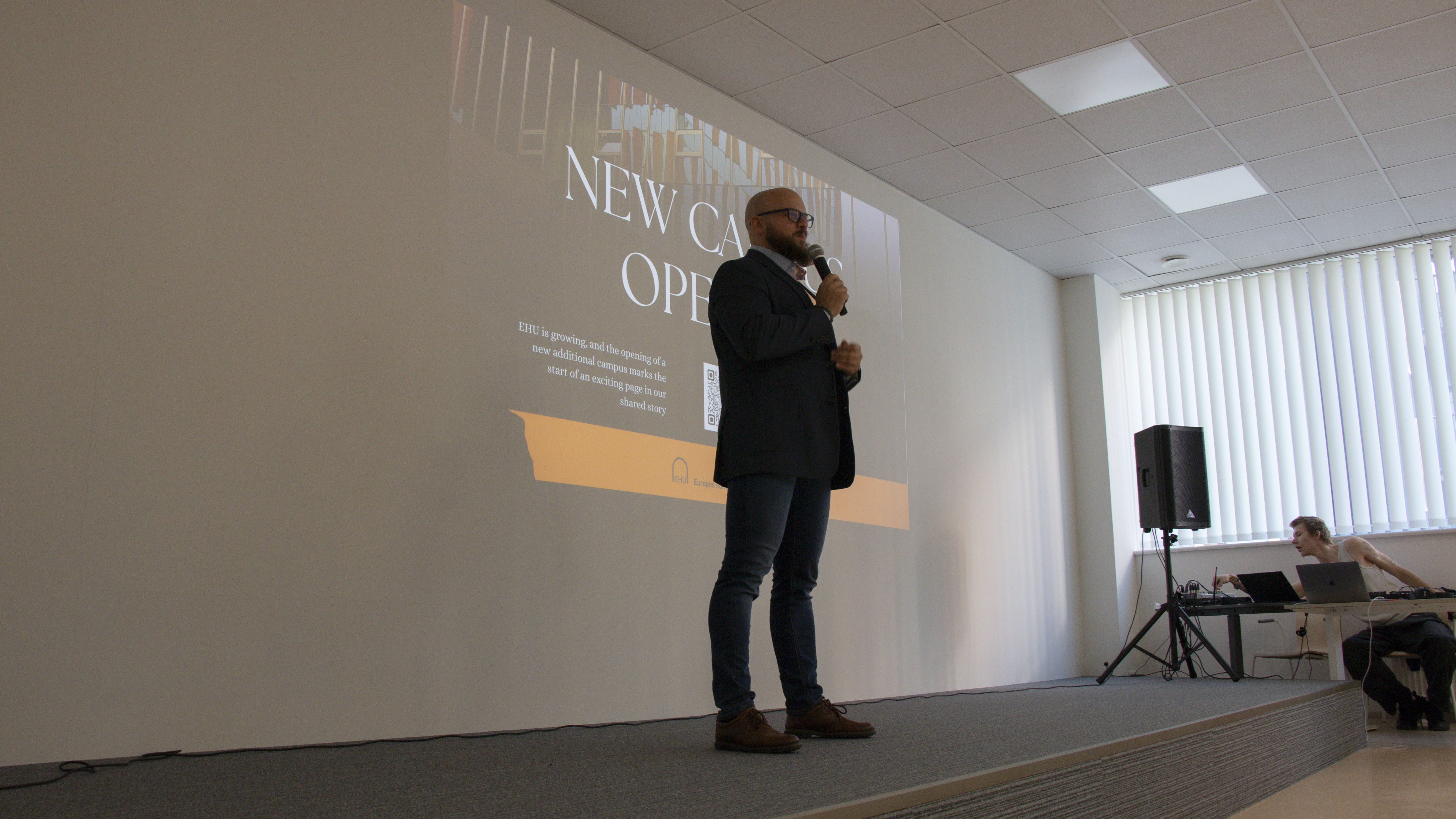 Ректор ЕГУ Доктор Вилюс Шадаускас в приветственной речи поблагодарил всех, кто был вовлечён в создание нового кампуса, и отметил, что это открывает новые возможности для всего академического сообщества: