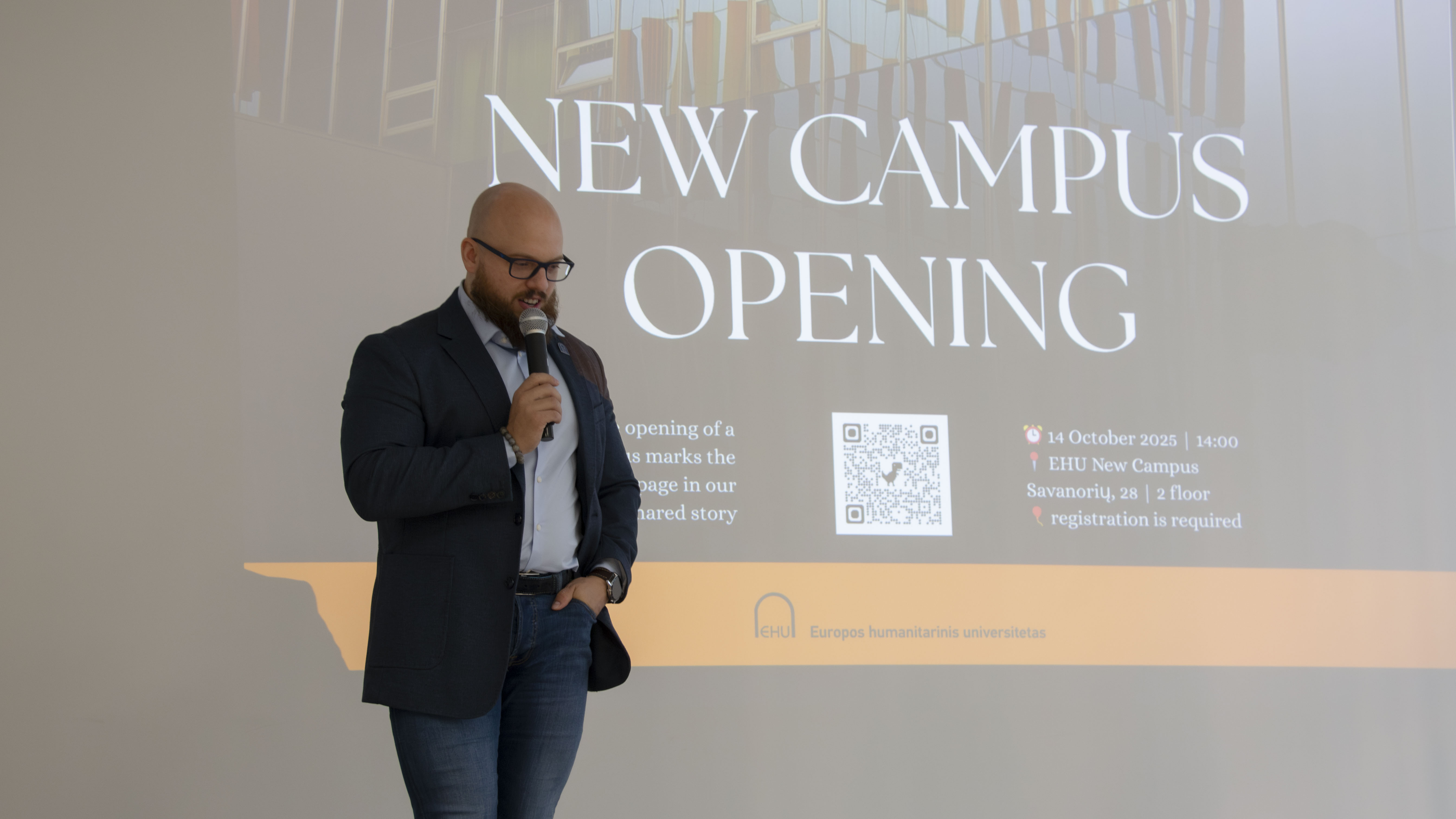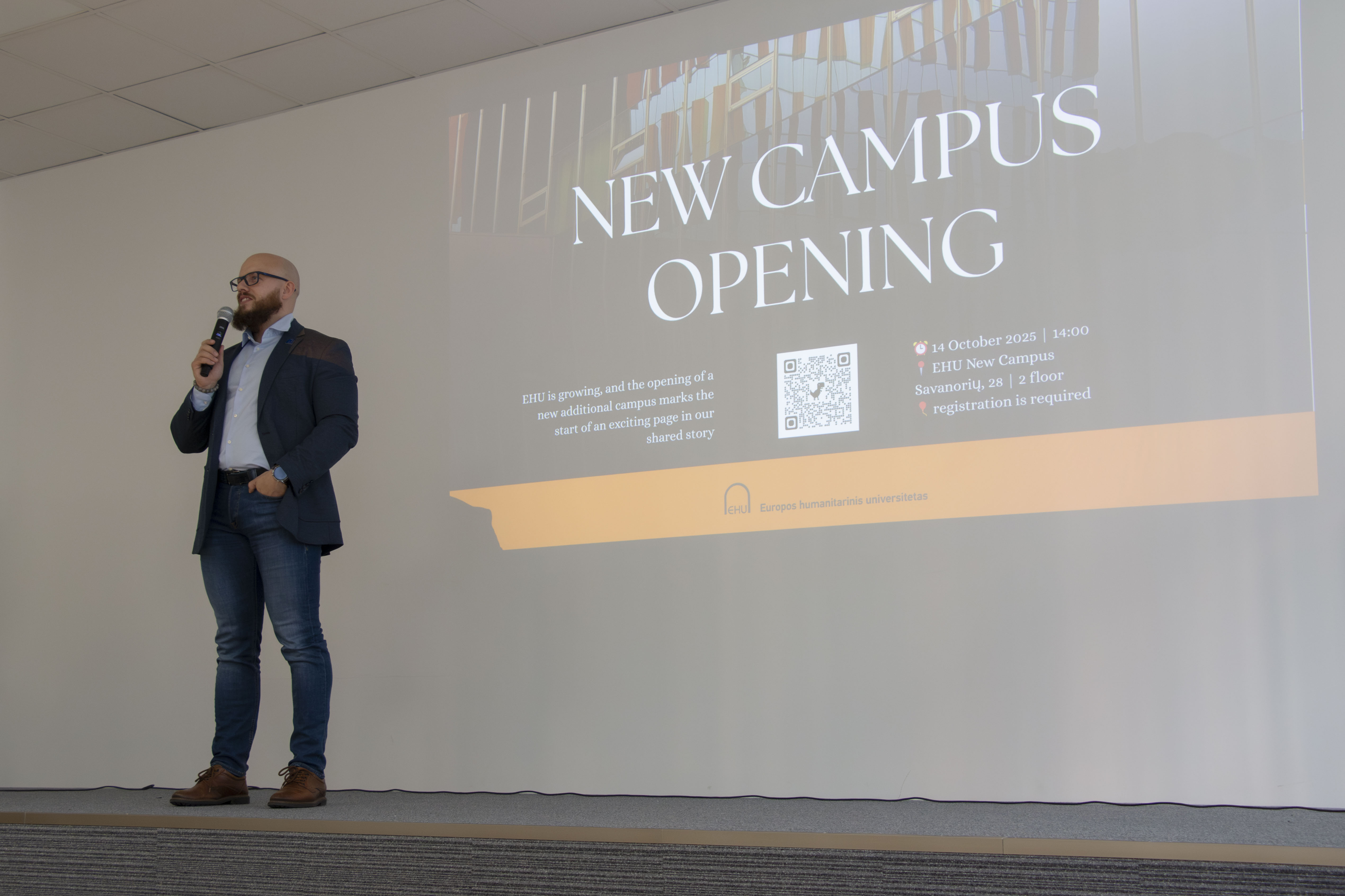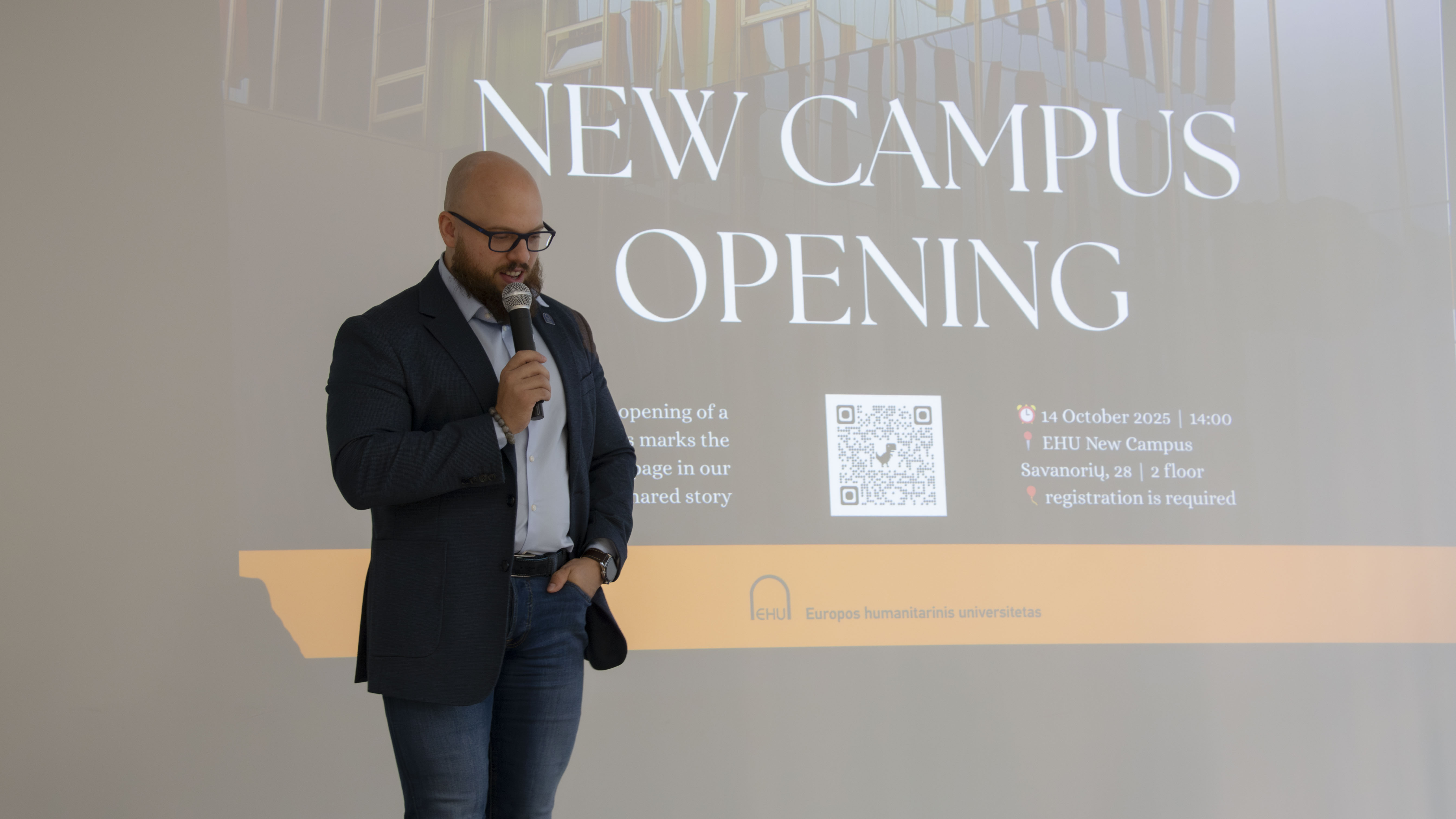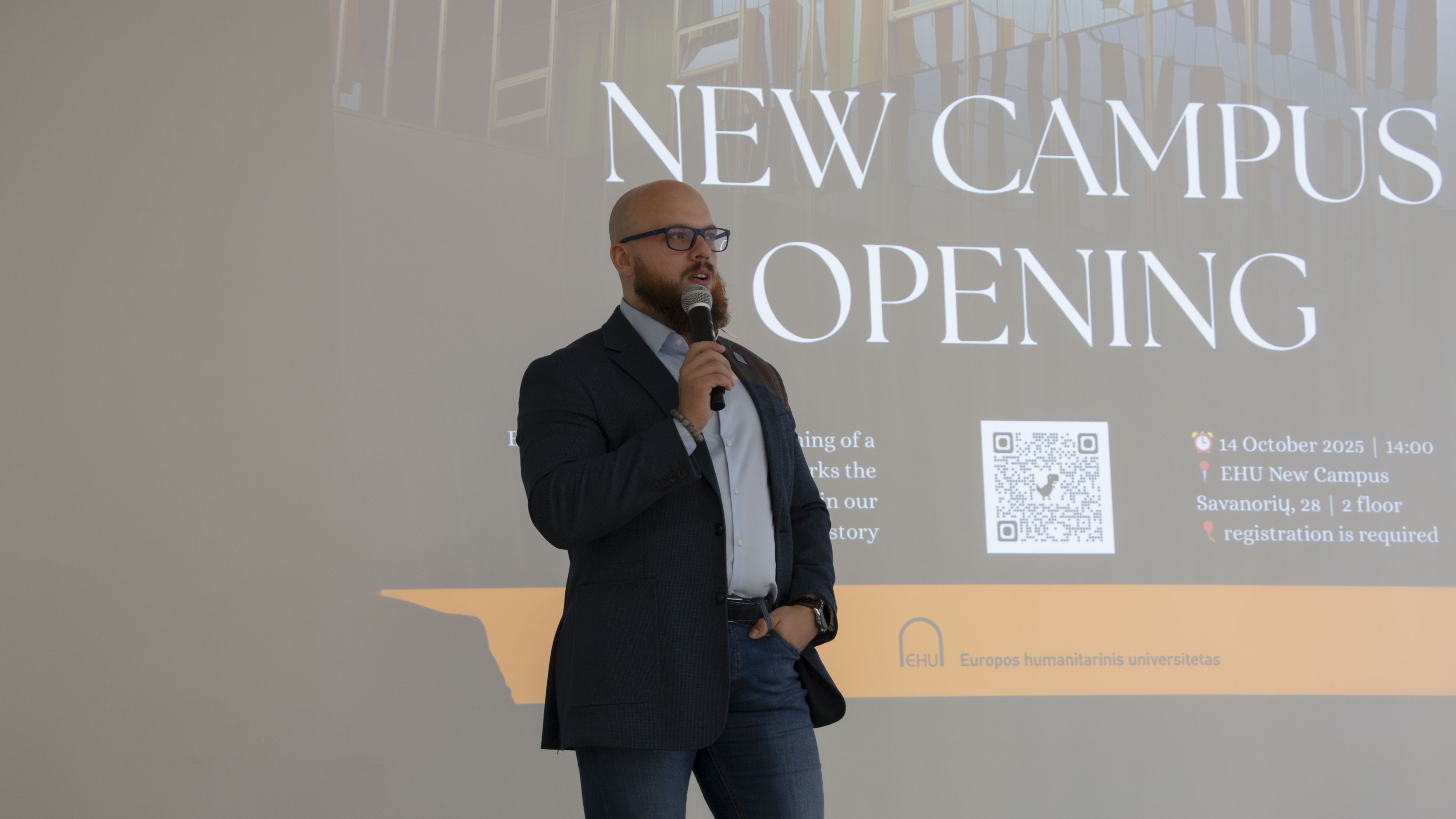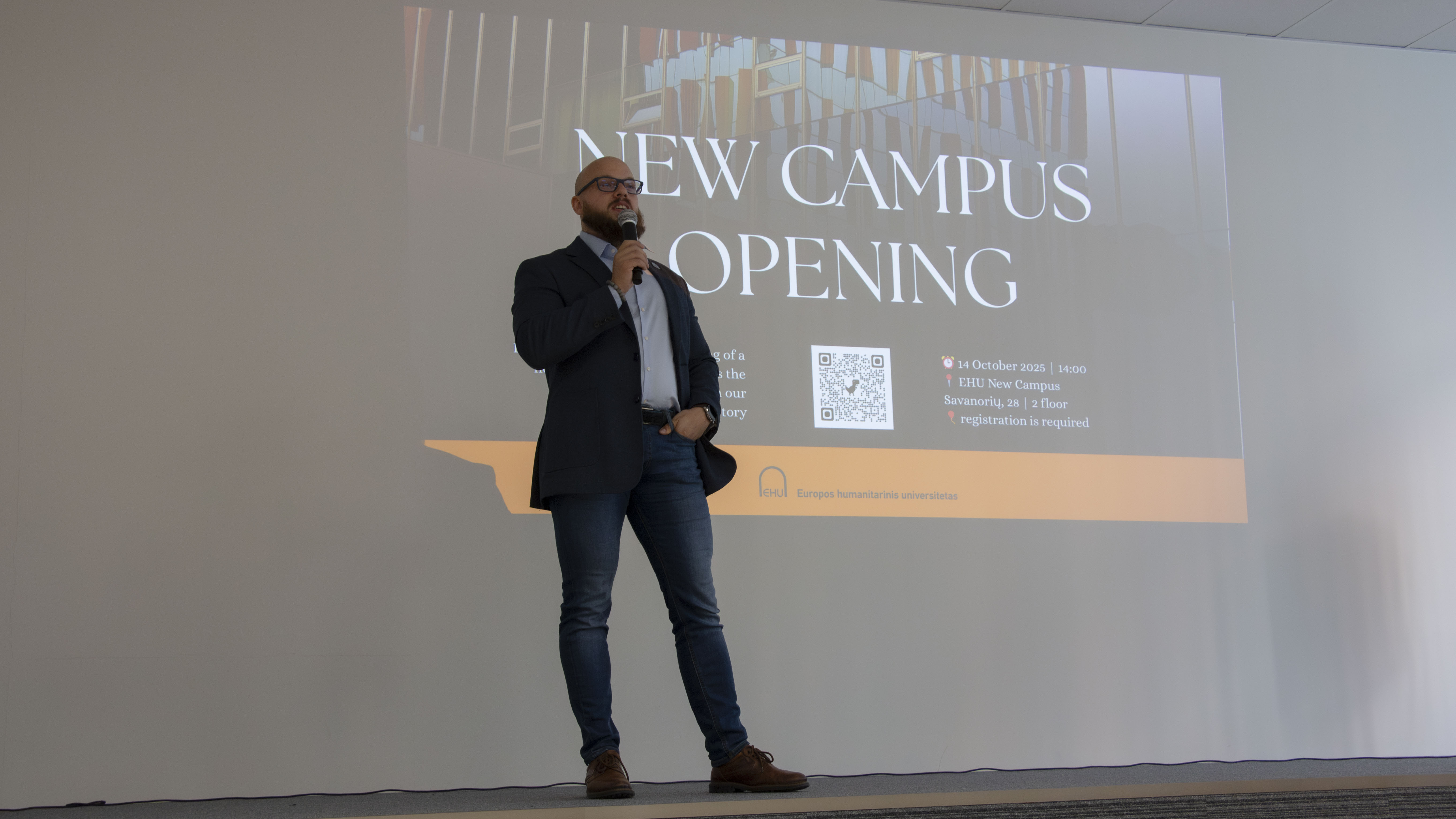 Ректор ЕГУ Доктор Вилюс Шадаускас в приветственной речи поблагодарил всех, кто был вовлечён в создание нового кампуса, и отметил, что это открывает новые возможности для всего академического сообщества: