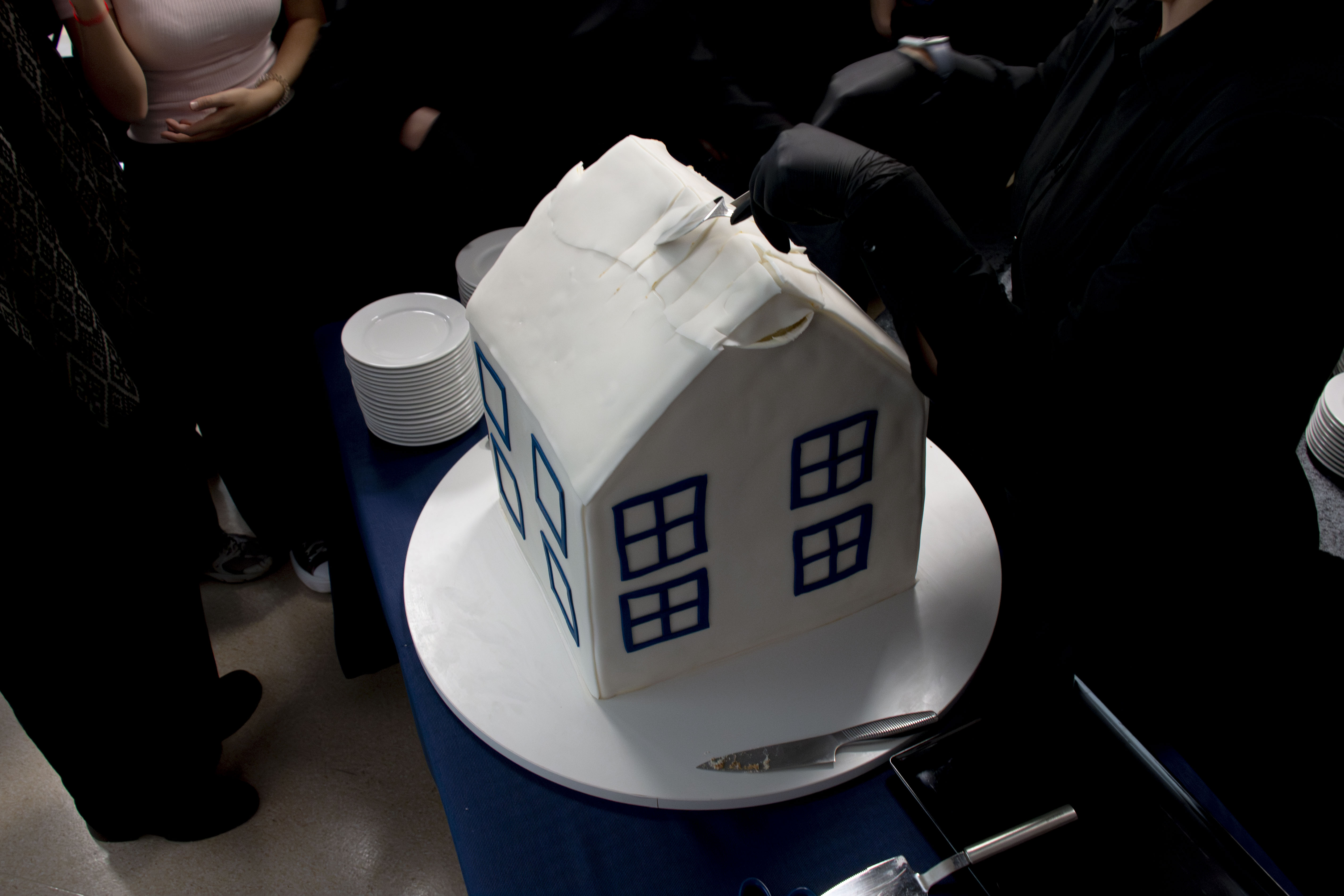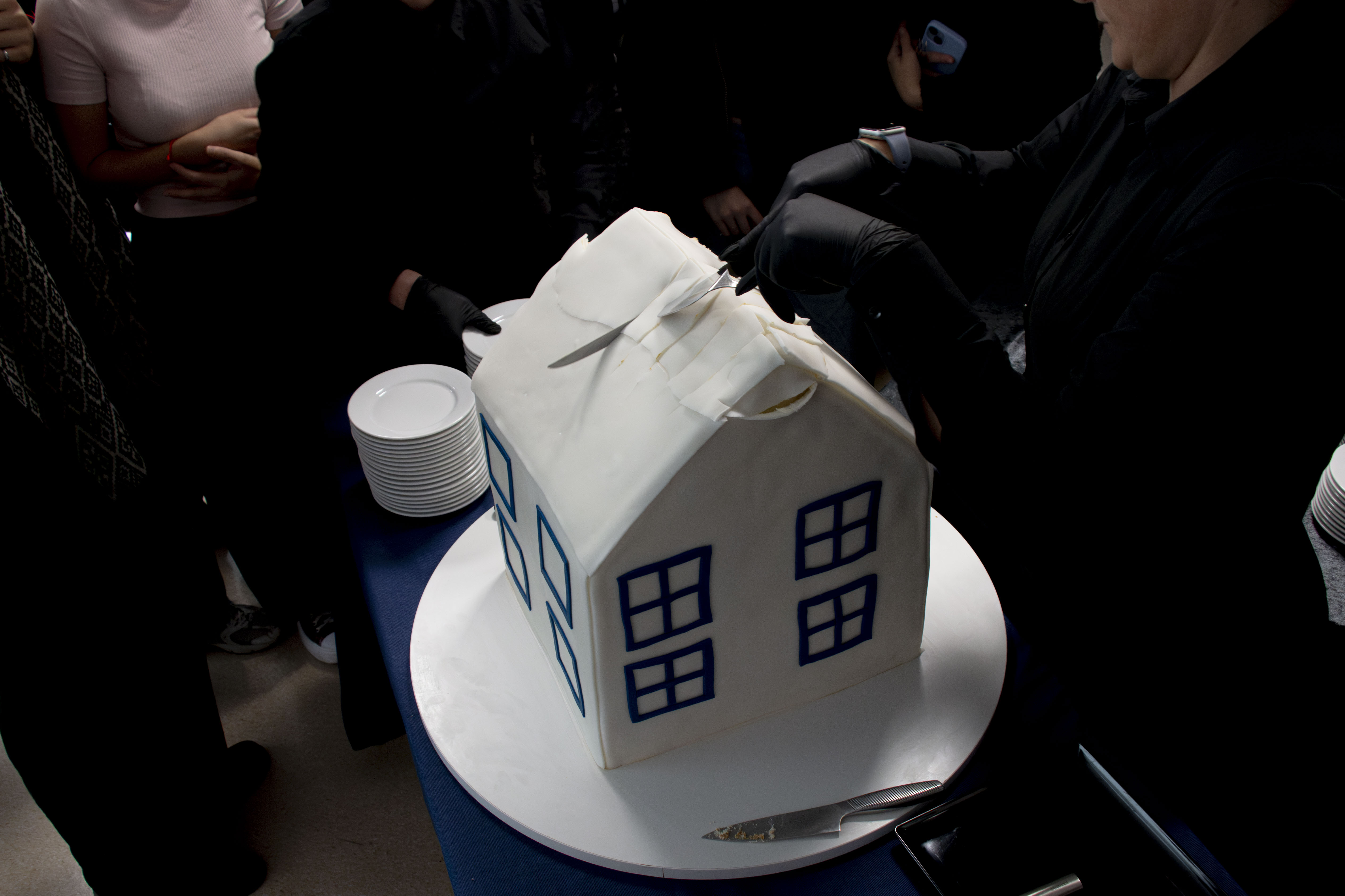 Церемония открытия прошла в праздничной атмосфере: музыка от диджея, лёгкие закуски, улыбки и общение сделали этот день особенным. Главным сюрпризом стал большой торт в форме домика — символ того, что ЕГУ — это дом, где можно чувствовать себя частью сообщества, расти и вдохновляться.