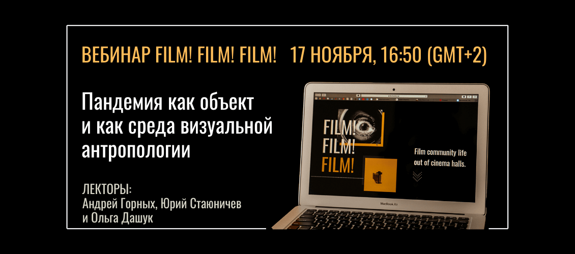 Во время вебинра проф. Андрей Горных и доц. Юрий Стаюничев выступят на тему «Пандемия как объект визуальной антропологии», а также предложат участникам вебинара просмотреть «Воспоминание о коронавирусе» – короткометражное видео-эссе, снятое весной 2020, которое станет поводом для разговора об эпидемии, визуальной антропологии и кинематографическом монтаже (а также о судьбах человечества).