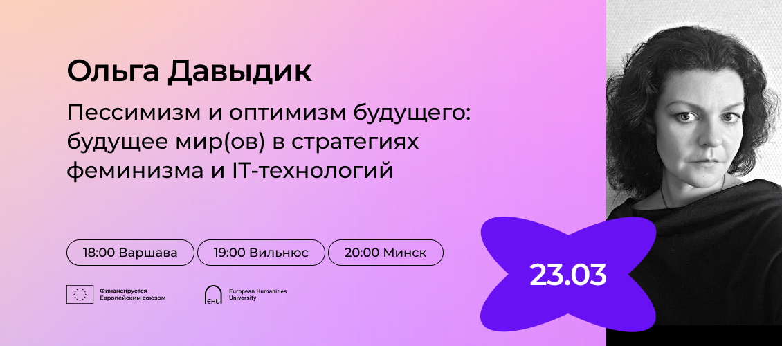 Философиня и исследовательница Ольга Давыдик в своей лекции «Пессимизм и оптимизм будущего» обратится к анализу киберфеминистких практик и теорий в осмыслении современного общества и анализу беларуских событий.