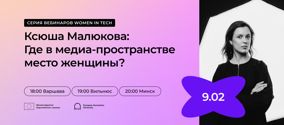 Серия вебинаров Women in Tech. Ксюша Малюкова: Где в медиа-пространстве место женщины?