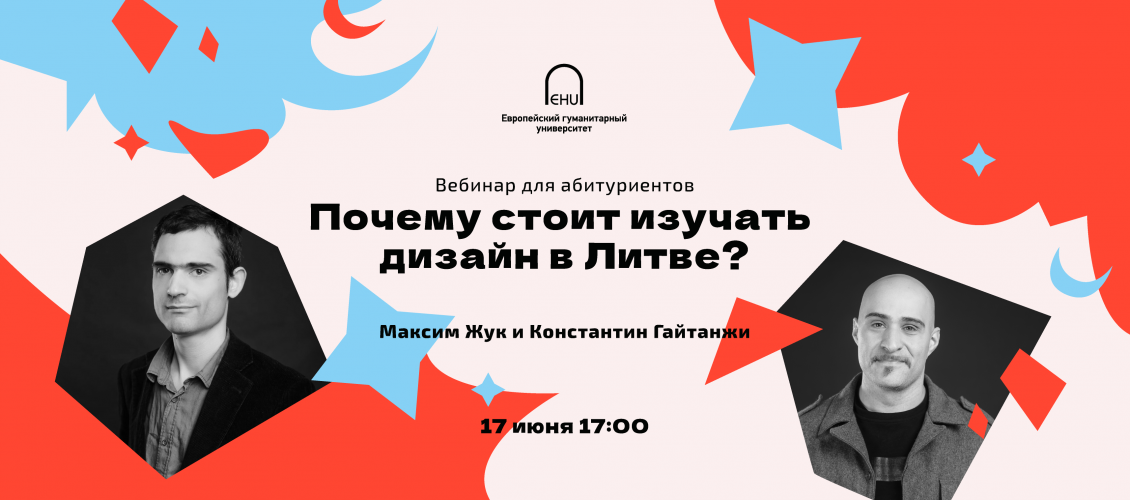 Во время вебинара дизайнер, куратор бакалаврской программы «Визуальный дизайн» Максим Жук и художник, куратор магистерской программы «Визуальная пластика» Константин Гайтанжи расскажут: