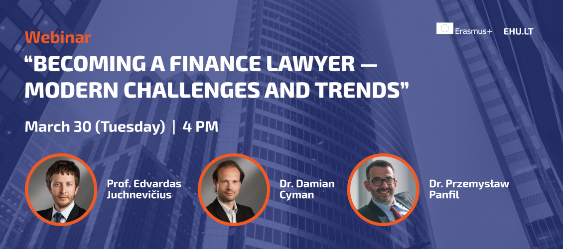 30 марта Департамент социальных наук Европейского гуманитарного университета (ЕГУ) совместно с Гданьским университетом в рамках программы «Эразмус+» проведет вебинар на тему: «Профессия юриста-финансиста – современные вызовы и тенденции» для студентов, абитуриентов и всех желающих.